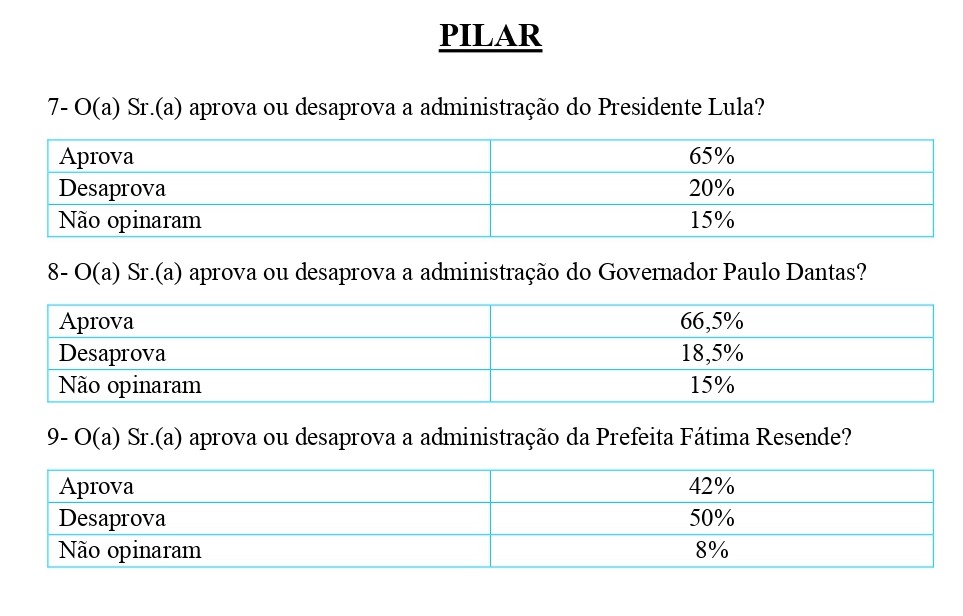 A pesquisa indica ainda que, para boa parte da população pilarense, a atual administração não conseguiu atender às demandas básicas nem apresentar resultados concretos em áreas essenciais, como infraestrutura, saúde e desenvolvimento econômico. Essa ausência de avanços teria contribuído para consolidar uma imagem de descrédito e desânimo quanto ao futuro do município. Os números negativos apontados na pesquisa Falpe evidenciam que a atual gestão pilarense precisa melhorar em muito.