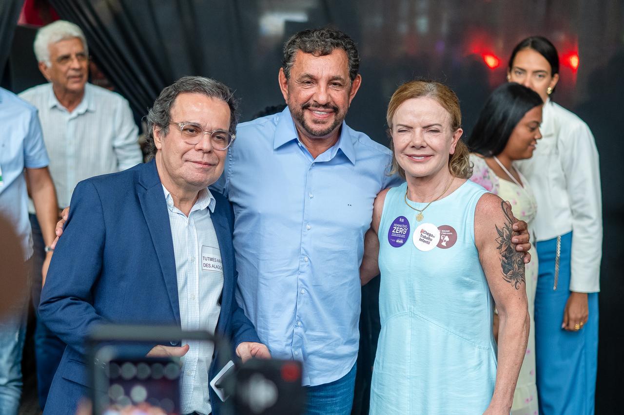 O evento contou com a presença da ministra Gleisi Hoffmann, do governador Paulo Dantas, do ministro dos Transportes Renan Filho, além de deputados estaduais, federais e diversas autoridades políticas, tornando-se um importante espaço de articulação institucional.